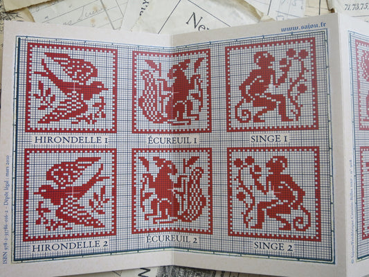 Explore Sajou embroidery pattern albums featuring vintage French samplers, alphabets, borders and classic motif series in red, green, blue and mauve. These heritage fold-out chart books are ideal for cross-stitchers, tapestry makers, textile historians and collectors seeking authentic Sajou designs. Choose your favourite album and order with fast UK delivery from Penelope Textiles.
