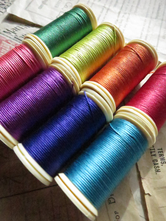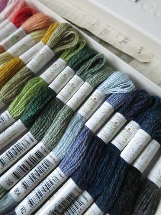 Shop embroidery threads at Penelope Textiles, including luxurious Sajou cotton and Fil au Chinois, DMC Eco Vita naturally dyed wool, metallic Tonkin thread, and glow in the dark options. These heritage threads are ideal for cross stitch, crewel, surface embroidery, tapestry, visible mending and creative embellishment, with reliable strength and beautiful stitch definition. Choose your colour and finish, then order premium embroidery thread with trusted quality and fast UK delivery.
