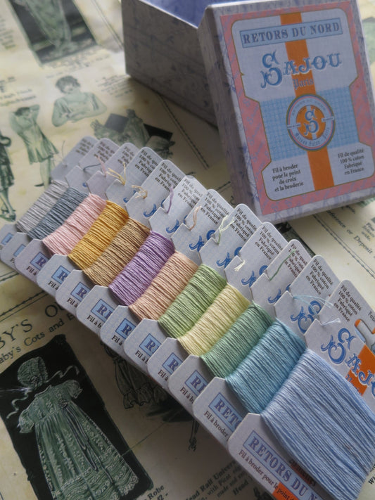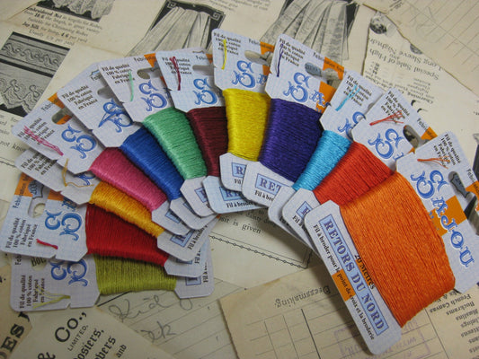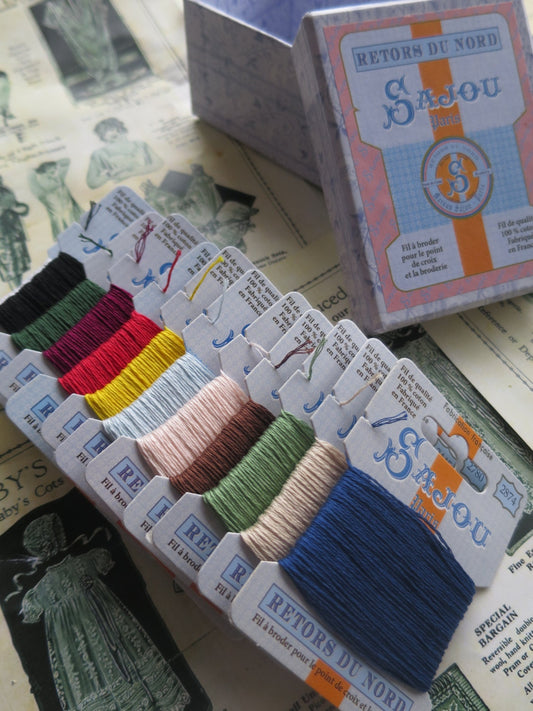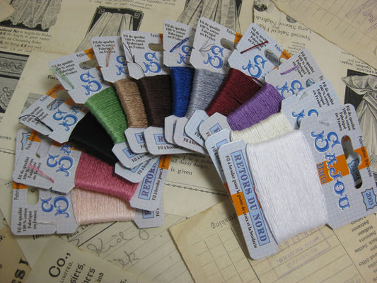 I have bought these threads before and I love them. Very strong and great colours. I believe they’re supposed to be for lace making, although I’m not certain, but I stitch with them, when I’m making something where I want to do a lot of running stitches.