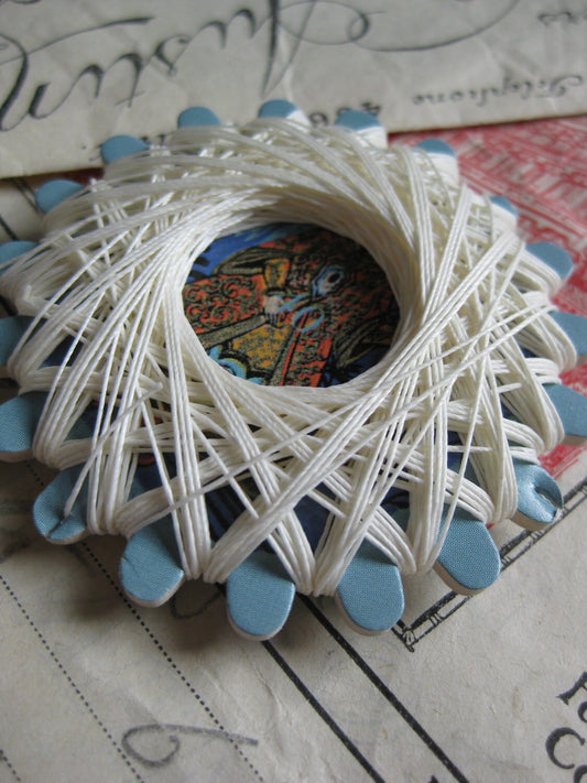 I have bought these threads before and I love them. Very strong and great colours. I believe they’re supposed to be for lace making, although I’m not certain, but I stitch with them, when I’m making something where I want to do a lot of running stitches.