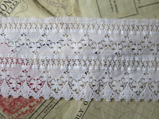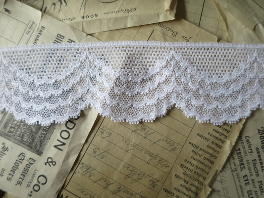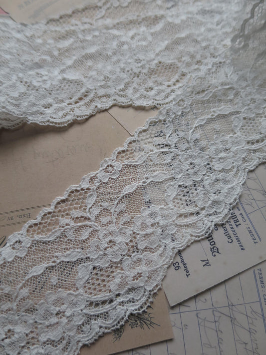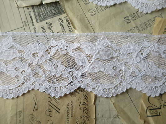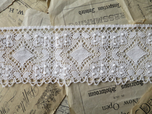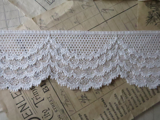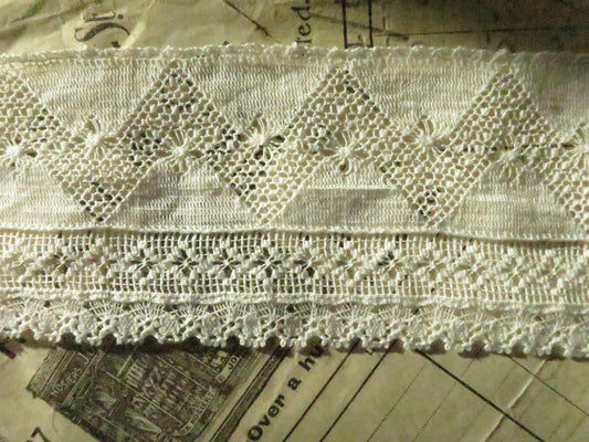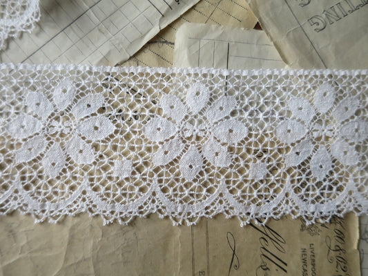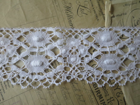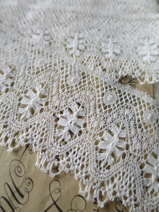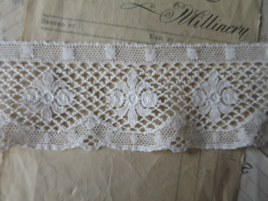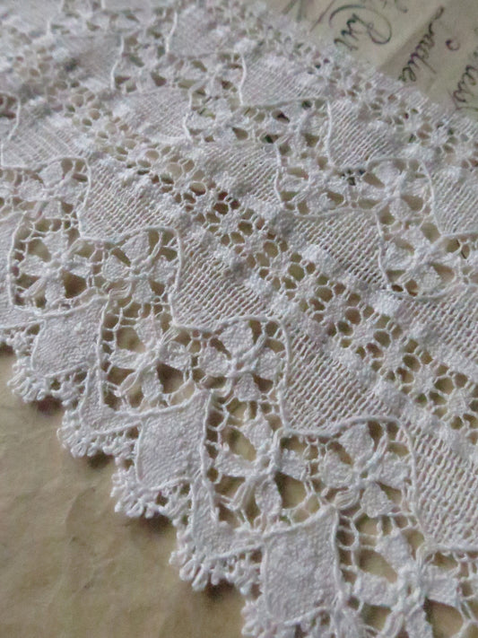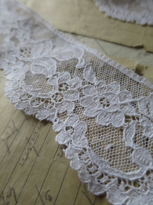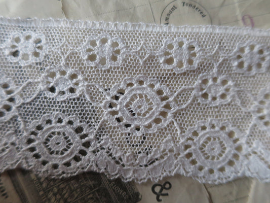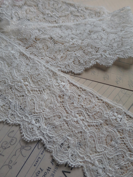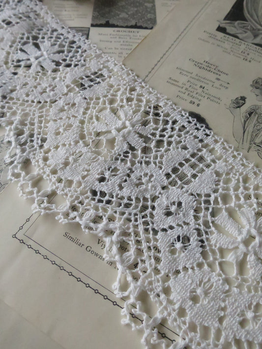 Browse medium Nottingham lace trims (3.7–8.5 cm wide), authentically UK-made and sold by the metre for elegant garment finishing. This heritage range includes Chantilly, Cluny, Valenciennes and eyelet styles, ideal for bridalwear, couture detailing, vintage restoration, christening gowns and period costume. Choose your perfect width and pattern, then order the exact length you need with fast UK delivery from Penelope Textiles.