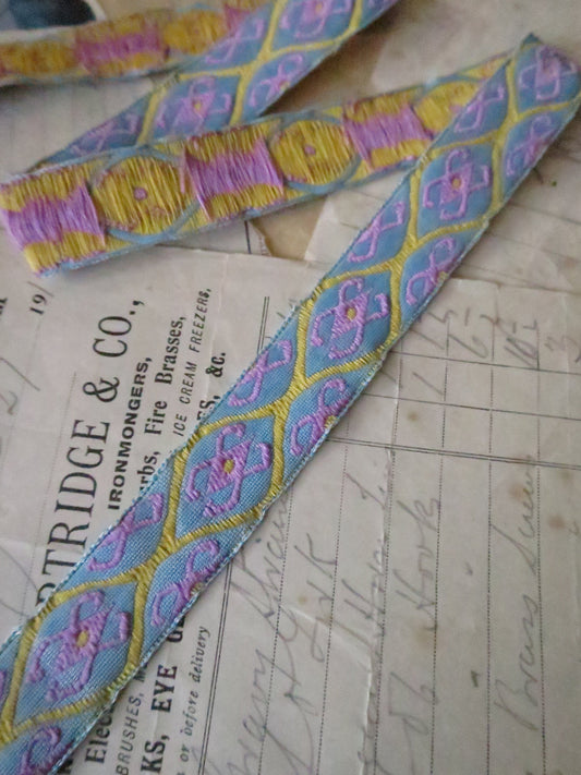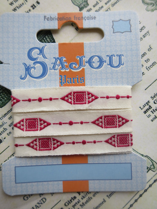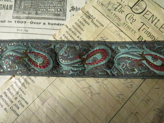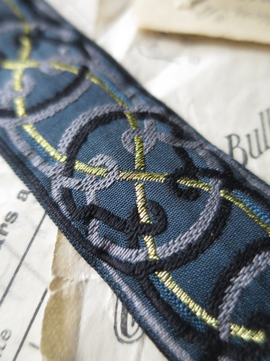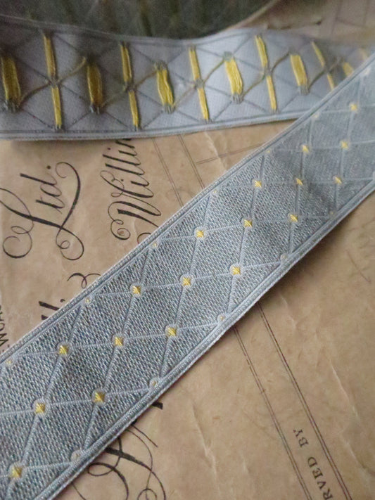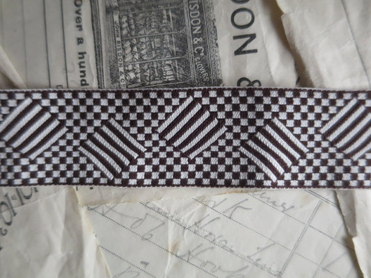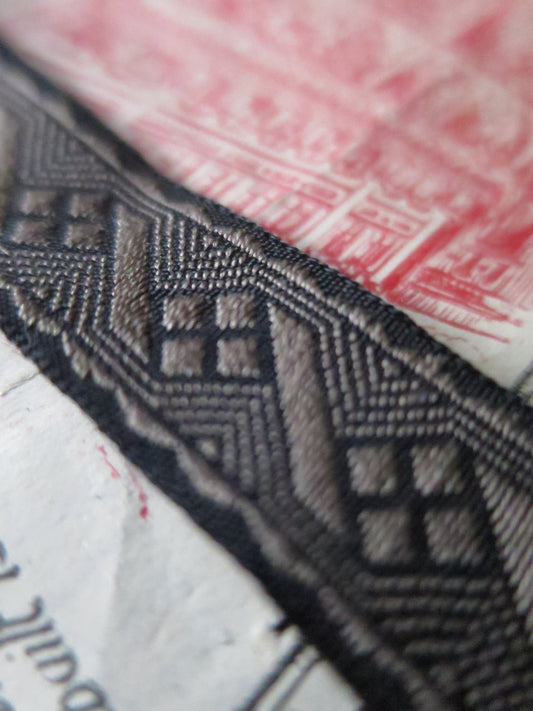 Shop patterned jacquard ribbons woven on heritage German looms, featuring classic trellis, paisley, Art Deco and geometric motifs in approximately 12 to 50 mm widths, sold by the metre. These richly textured woven trims are ideal for couture finishing, bridal details, gift wrapping, embroidery accents, interiors and creative craft work. Choose your favourite pattern and width, then order the exact length you need with trusted heritage quality and fast UK delivery from Penelope Textiles.