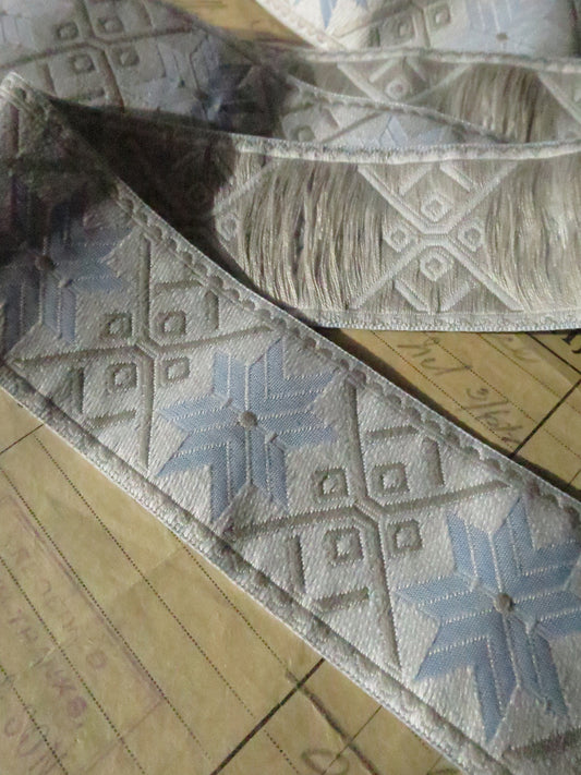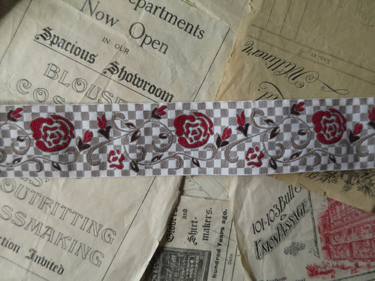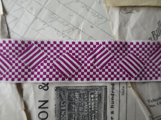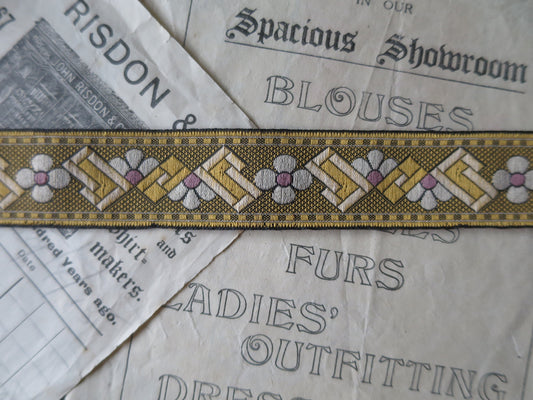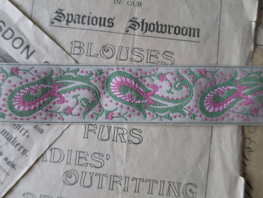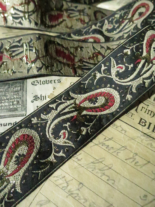 Shop patterned jacquard ribbons woven on heritage German looms, featuring classic trellis, paisley, Art Deco and geometric motifs in approximately 12 to 50 mm widths, sold by the metre. These richly textured woven trims are ideal for couture finishing, bridal details, gift wrapping, embroidery accents, interiors and creative craft work. Choose your favourite pattern and width, then order the exact length you need with trusted heritage quality and fast UK delivery from Penelope Textiles.