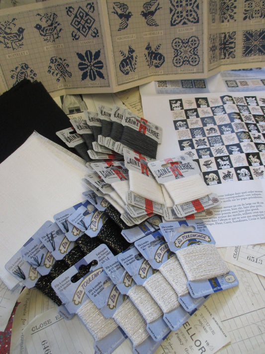 Shop Sajou boxed throw kits at Penelope Textiles, featuring luxury plaid linen throws with Gothic or floral letters, Alsacienne figures, and classic black and white Wissant plaid. These complete heritage cross stitch kits are ideal for statement home décor, heirloom stitching, and premium gifts, with beautifully presented gift box sets and traditional Sajou quality. Choose your favourite design and order a boxed throw kit with fast UK delivery.